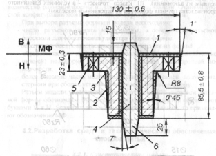 - более высокую часть модели располагать в нижней полуформе. стержни при сборке устанавливать в нижнюю полуформу. Разъем модели условно обозначают буквами РМ. а разъем литейной формы обозначают РФ. Верх и низ модели в форме обозначают буквами В и Н. Если разъем модели и формы совпадают, то применяют обозначение МФ.