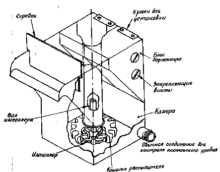 7. Перекрывается клапан к резервуару контрольного устройства уровня. Остатки пенного продукта на скребке и на стенках камеры следует смыть водой и добавить к концентрату. Продукт, оставшийся на импелере, также следует смыть водой и добавить к отходам.