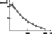 вычисляют значения текущей концентрации перекиси водорода Сi, (i = 1÷n) по формуле: Ci = (P∞ - Pi)∙C0/ P∞, где С0 = 0,22 моль/л – исходная концентрации исследуемого раствора перекиси водорода.