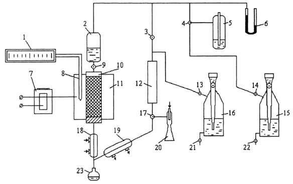 На рис. 3.5 представлена схема лабораторной установки. Каталитический крекинг газойля осуществляют на неподвижном слое катализатора в трубчатом кварцевом реакторе 10, помещенном в электропечь 11. Напряжение, подаваемое на обмотку печи, регулируют автотрансформатором 7.