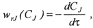 где τ - время пребывания реагентов в реакторе; cj - молярная концентрация компонента J (газойля, бензина или крекинг-газа); WrJ(CJ) - кинетическое уравнение реакции по