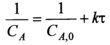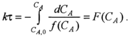 В соответствии с уравнением (5.4) зависимость между F(CA) и τ является линейной; по величине тангенса угла наклона прямой линии можно определить константу скорости реакции.
