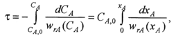 где τ - время пребывания реакционной смеси в реакторе, необходимое для достижения степени превращения реагента xA ; wrА(СA) или wrA(xA) - кинетическое уравнение реакции.