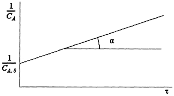 Так как экспериментальные точки обычно характеризуются некоторым разбросом, то при построении линейной зависимости целесообразно использовать метод наименьших квадратов (МНК). Конкретный вид функции для необратимой химической реакции второго порядка зависит от того, взяты ли реагенты в стехиометрическом соотношении или нет.