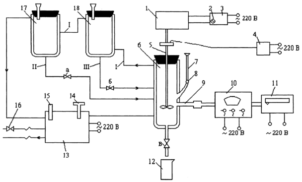 - мерные сосуды 17 и 18 для исходных реагентов, также снабженные рубашками для поддержания постоянной температуры;