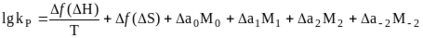 Расчет значений логарифмов констант равновесия газовых реакций этим методом производится по вытекающей из точной формулы: