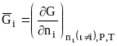 Если в качестве экстенсивного свойства выбирается энергия Гиббса раствора (G), то ее величина, в отличие от значения G для идеального газа (4.67), зависит еще и от чисел молей компонентов раствора: