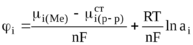 - разность потенциалов между металлом и раствором. Эта работа - работа системы по выравниванию химического потенциала вещества в контактных фазах и определяющаяся разностью химических потенциалов