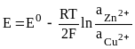 Работа химической реакции, протекающей в гальваническом элементе, связана с изменением активностей ионов в растворе, поэтому применение уравнения изотермы химической реакции дает: