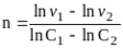 Cn, где n - порядок реакции. Тогда для двух различных концентраций