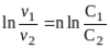 В координатах ln v - lnC получается прямая, тангенс угла наклона которой к оси абсцисс равен порядку реакции n.