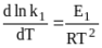 Уравнение (10.23) может быть записано как для прямой, так и для обратной реакции с энергиями активации Е1 и Е2 соответственно: