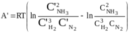 в) те же операции, но в обратном порядке, одновременно проделываются с двумя молями аммиака, при переводе их из равновесного ящика с концентрацией