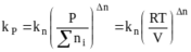 Замена концентраций парциальными давлениями дает в условиях P, T = const: