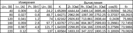 4. При помощи ручки автотрансформатора плавно повышать напряжение от 0 до 220 [В]. Показания приборов занести в таблицу 2.1.