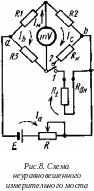 Для контроля разности потенциалов в схему моста параллельно термометру включается манганиновое контрольное сопротивление Rк, равное сопротивлению термометра при определенной температуре, отмеченной красной чертой на шкале милливольтметра [1].