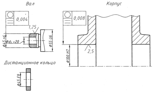 Посадка дистанционного кольца (втулки) на вал имеет вид
