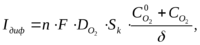 Скорость коррозии с кислородной деполяризацией при замедленной диффузии кислорода определяется уравнением