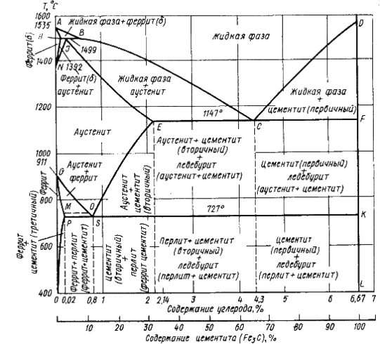 Рис. 9.1. Диаграмма состояния железо - цементит