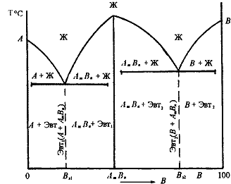 Рис. 5.6. Диаграмма состояния сплавов, компоненты которых образуют химические соединения