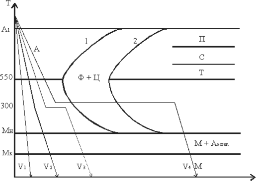 Для получения требуемой структуры изделия охлаждают с различной скоростью, которая в большой степени определяется охлаждающей средой, формой изделия и теплопроводностью стали.