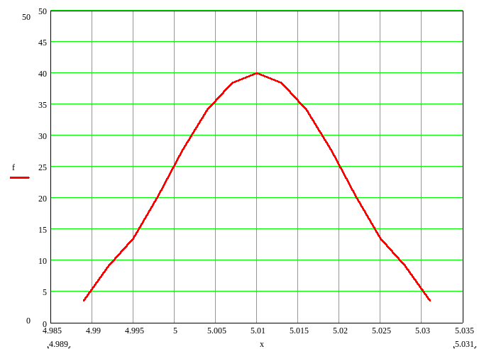W(x) = (1/( 0,009165 2)) exp( -(x-5,01)2/(20,0091652 )) =