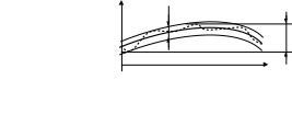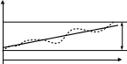 После проведения аппроксимирующей линии визуально оценивают экстремальные отклонения от этой линии. Если не наблюдается резко выпадающих из общей тенденции отклонений (результатов с грубыми погрешностями), то через самые удаленные от нее точки (максимальные отклонения в "плюс" и в "минус") проводят эквидистанты аппроксимирующей линии. Расстояние между ними вдоль оси ординат в масштабе точечной диаграммы равно размаху отклонений R, и рассматривается как одна из характеристик случайной составляющей погрешности анализируемой серии.