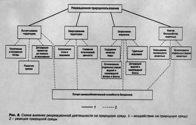 Человек, посещающий природные территории, слабо затронутые хозяйственной деятельностью или полностью нетронутые, вольно или невольно оказывает на них определенное влияние. В том случае, когда количество посетителей значительно, а устойчивость ПТК сравнительно невысока, влияние человека становится не только заметным, но может оказать и разрушающее действие по отношению к отдельным природным компонентам, а то и ко всему комплексу в целом.