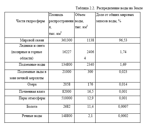 протекающие, получила название гидрологииуши Подземная гидросфера — включает воды, находящиеся в верхней части земной коры. Их называют подземными. Сверху подземная гидросфера ограничена поверхностью земли, нижнюю ее границу проследить невозможно, так как гидросфера очень глубоко проникает в толщу земной коры. Подземные воды, как мы уже сказали, изучает наука гидрогеология. Образование гидросферы связано с дегазацией вещества мантии Земли. По отношению к объему земного шара общий объем гидросферы не превышает 0,13 %. Основную часть гидросферы (96,53%) составляет Мировой океан .