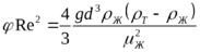 При малых числах Re жидкость плавно «обтекает» частицу без образования вихрей в кормовой части. Коэффициент сопротивления в этой области описывают уравнением