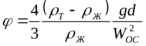 Скорость осаждения твёрдой частицы непосредственно из уравнения (1.4) рассчитать нельзя, так как неизвестно значение коэффициента сопротивления ϕ, который зависит от режима осаждения.