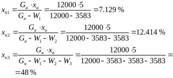 В первом приближении количество выпаренной воды по корпусам принимаем равным, т.е.