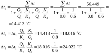 Исходя из условия получения равных поверхностей нагрева для каждого корпуса установки полезная разность температур по корпусам может быть определена по уравнению