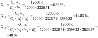 а затем конечную концентрацию раствора по корпусам