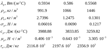 | 7 | Удельная теплота парообразования, Дж/кг | 2116800 | 2197600 | 2356900 | |
