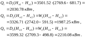 | 4 | Тепловая нагрузка аппаратов, кВт | Q | 2030.78 | 1987.25 | 2210.08 |