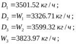 | 2 | Расход выпаренной воды, кг/ч | W | 3326.71 | 3599.32 | 3823.97 |