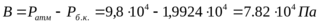Давление воздуха равно Рвозд=Рб.к.-Рп