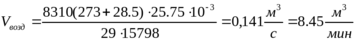 Vвозд =R(273+tвозд )Gвозд /(Мвозд Рвозд )