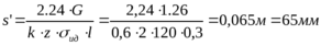 Расчетную толщину ребра лапы при k = 0.6 определяем по формуле (29.1):