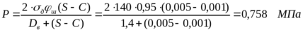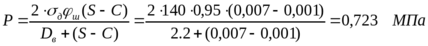 P = Pвп + gжН10-6 = (5,819,81104 + 9,8110941,3)10-6 = 0,584 Мпа