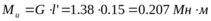 Момент от реакции опоры, действующий на лапу при расчетном плече l’ = 0,15 м,