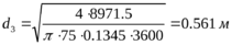 dвн - внутренний диаметр штуцера (расчетный), м;