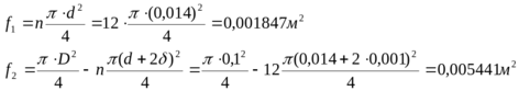 внутри труб f1 и в межтрубном пространстве f2: