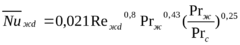 Формула описывает среднюю теплоотдачу в прямых гладких трубах при (l/d) > 50. За определяющую здесь принята средняя температура жидкости в трубе, а за определяющий размер- внутренний диаметр. Число Prc выбирается по средней температуре поверхности стенки.