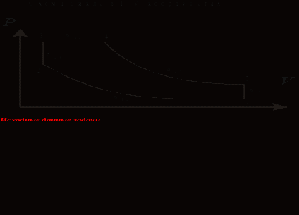 Научиться рассчитывать термодинамические параметры точек цикла, энергетических характеристик цикла. Изучить методы расчёта работы, совершённой газом, тепла, поступающего к рабочему веществу.