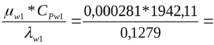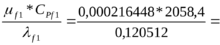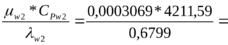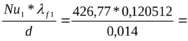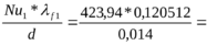 Nu1 = 0,021*126321,330,8*3,640,43*(3,64 / 4,27)0,25 = 423,94;
