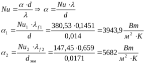 11 Задаемся температурой стенки в первой приближении tw1'= tw2'=85°C.