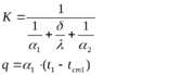 α1 - коэффициент теплоотдачи – количество теплоты, которое отдается от теплоносителя стенки или от стенки теплоносителя на единицу поверхности в единицу времени при разности температур в один градус.