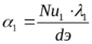 6. Находим коэффициент теплоотдачи для первого теплоносителя (в случае жидкость)